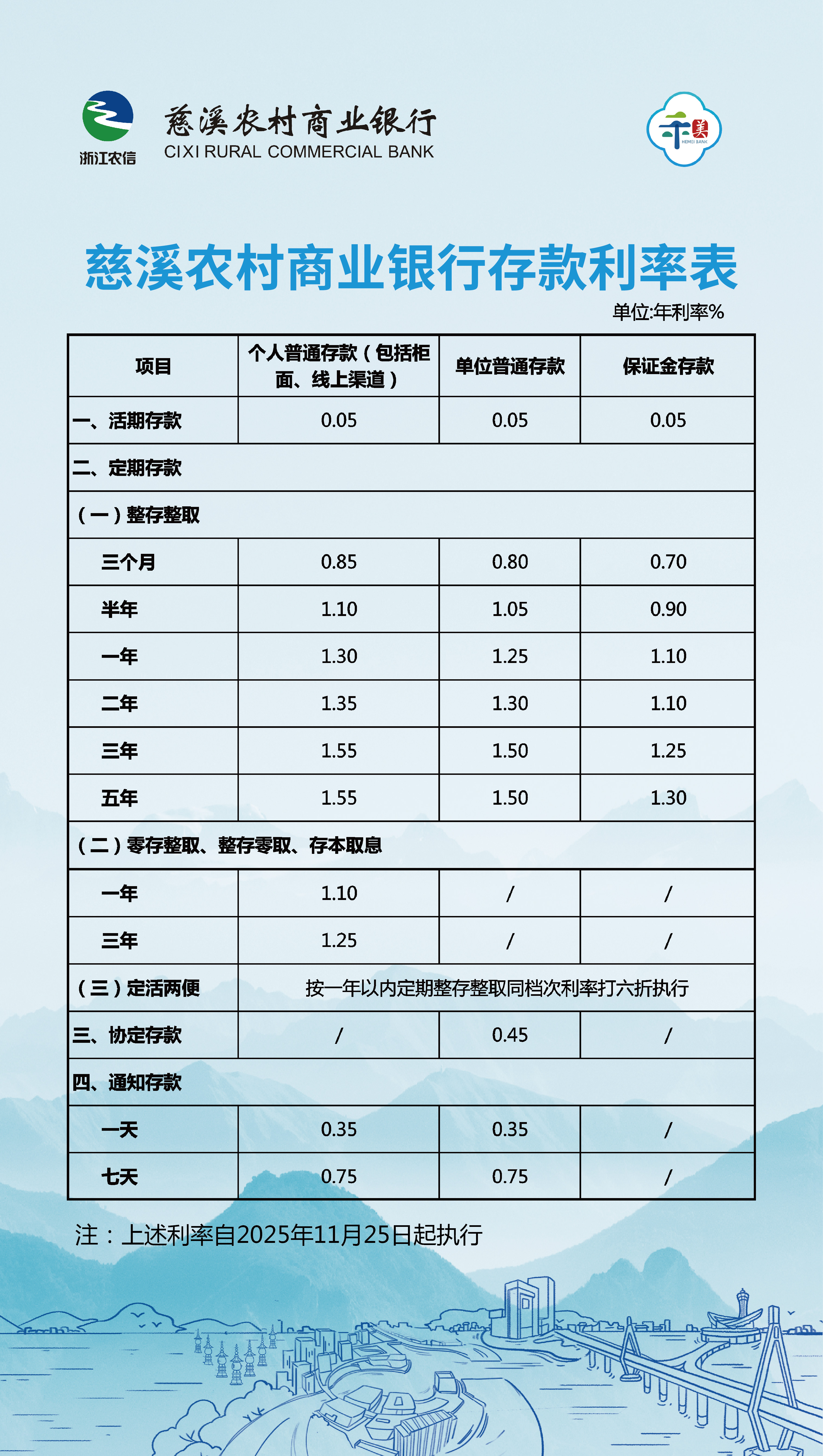 存款执行利率表